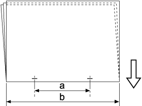 Available range of the adjustment varies depending on paper sizes. The minimum value is subject to the traveling range of stapler, while the maximum value requires that the exit guides and stapler do not interfere in the saddle stitcher.