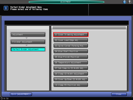 The screen returns to the [Perfect Binder Adjustment Menu] screen.