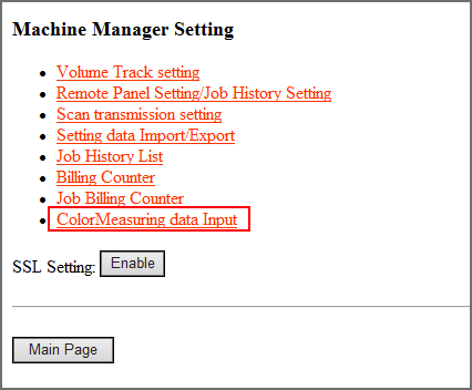To register colorimetric data in the machine via Web, configure a setting to access to Web Utilities from the computer connected to the machine via the network.
