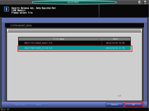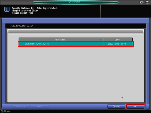 Select the file name of the data to be registered, then press [OK].