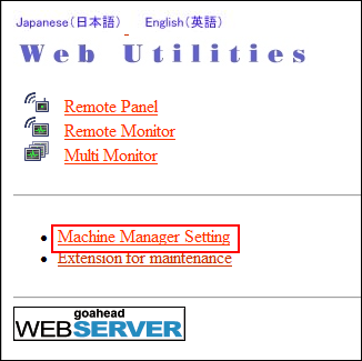 Click [Machine Manager Setting], and enter the administrator ID and password.