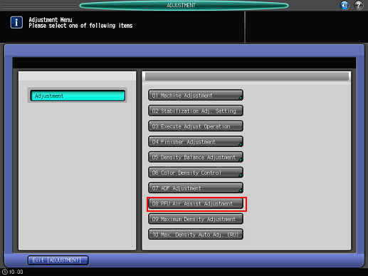 Press [Adjustment] on the [MACHINE] screen to display the [Adjustment Menu] screen.
