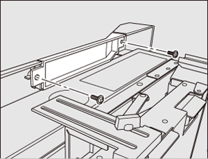 Pull out the tray, remove the two screws, and then open the air nozzle confirmation window.