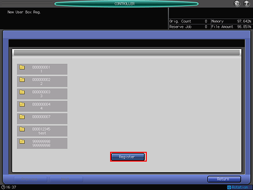 You can delete a user box or edit information of a user box from [Controller] under [Administrator Setting]. For details, refer to User Box Setting: Registering, Changing, and Deleting a User Box.