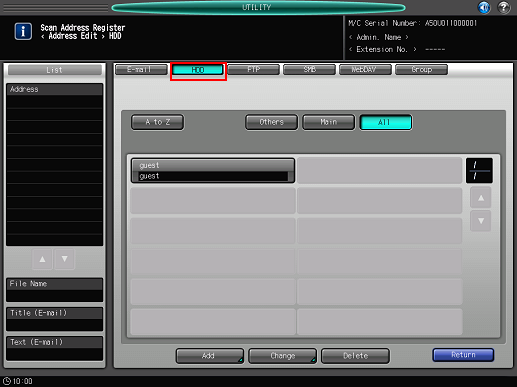 Follow the procedure on Scan Address Register to display the [Scan Address Register Menu] screen.
