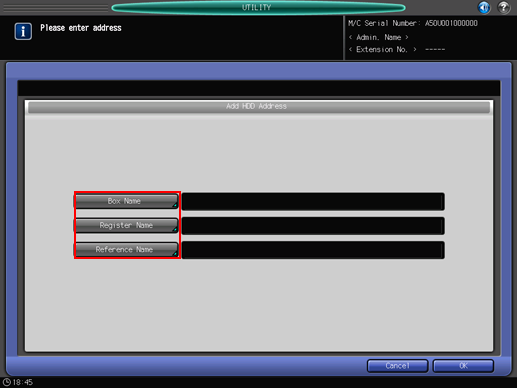 Enter information of a destination on the [Add HDD Address] screen.