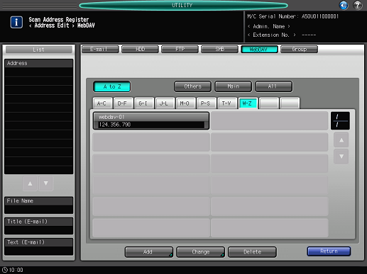 Register a WebDAV server. Sending scan data to an WebDAV server is made easy by registering the WebDAV server as a destination.