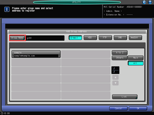 Press [Group Name], and then enter a group name on the [Group Name] screen.