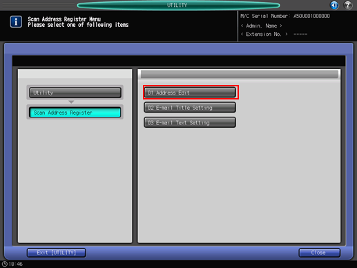Follow the procedure on Scan Address Register to display the [Scan Address Register Menu] screen.
