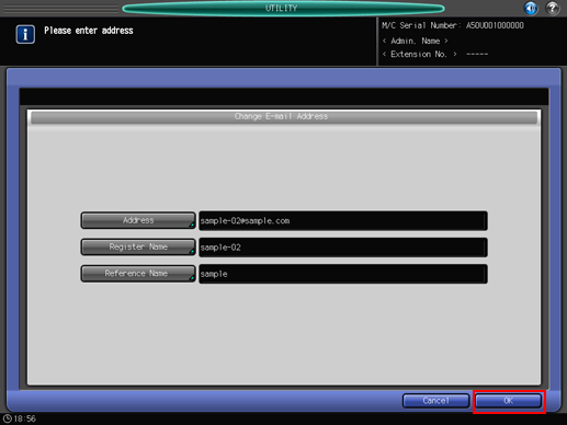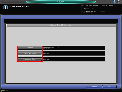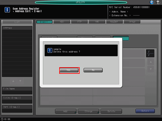 Follow the procedure on Scan Address Register to display the [Scan Address Register Menu] screen.