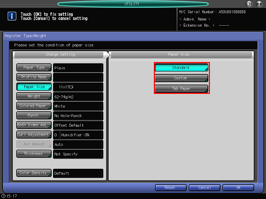 You can also register paper profiles using [Reg./Del. Paper Set.] on the [MACHINE] screen. For details, refer to Register/Delete Paper Setting: Registering/Deleting Profile.