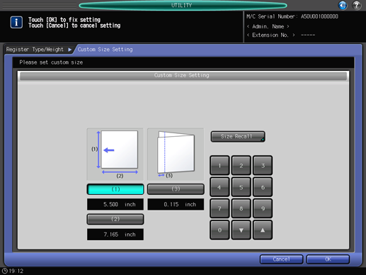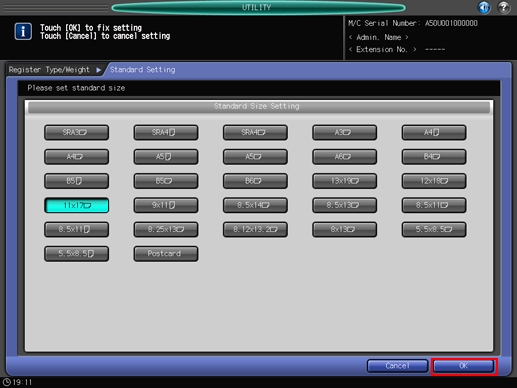 Press [OK] to complete the setting. To cancel the change, press [Cancel]. In either case, the screen returns to the [Register Type/Weight] screen.