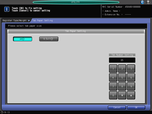 Selecting [Tab Paper] displays the [Tab Paper Setting] screen.