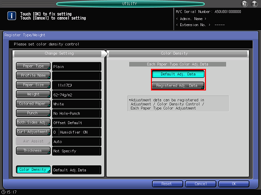 Press [Default Adj. Data] or [Registered Adj. Data].