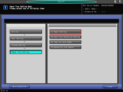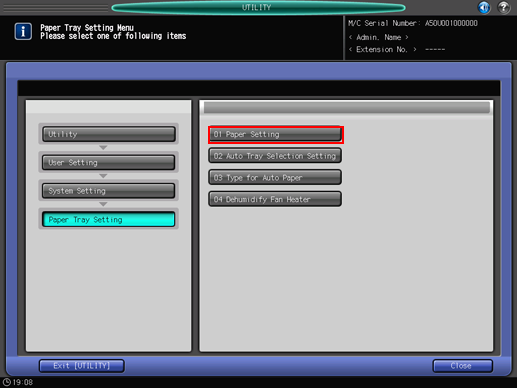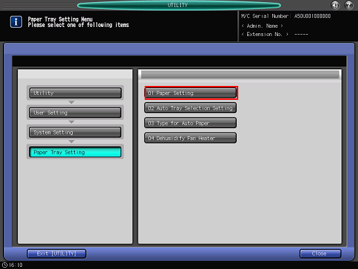 Press [Close] to return to the [Paper Tray Setting Menu] screen.