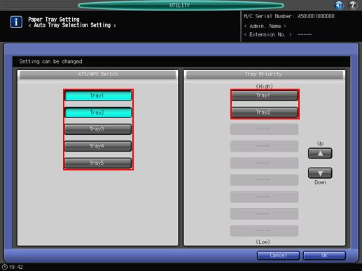Specify the priority of selected trays using the buttons provided under [Tray Priority].