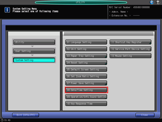 Press [System Setting] on the [User Setting Menu] screen, and then press [Date/Time Setting].