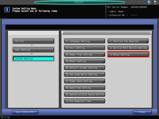 Press [System Setting] on the [User Setting Menu] screen, and then press [Mouse Setting].