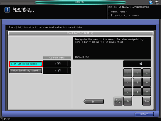 Wheel Booster Setting: Specify the scroll amount and value entry range for the scroll wheel.