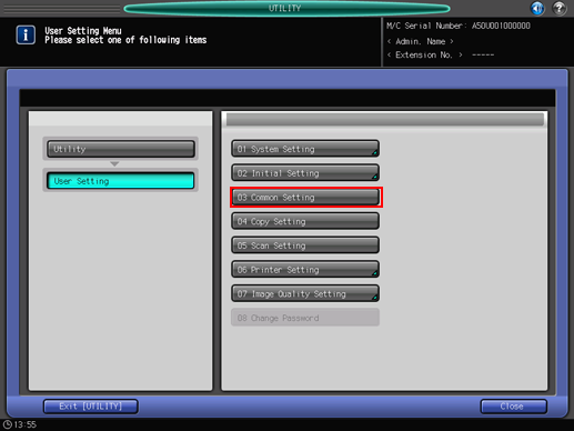 Press [Common Setting] on the [User Setting Menu] screen.