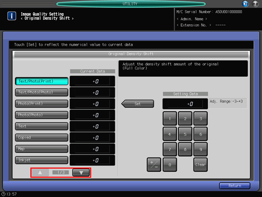 Home Settings and AdjustmentsOriginal Density Shift: Adjusting the Original Density Shift Amount