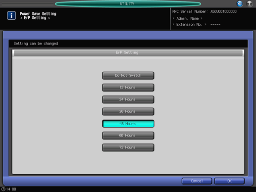 Select the period of time after which the ErP function is activated. Select [Do Not Switch] to deactivate the ErP function.