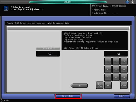 Press [Exit PrintMode] to return to the [Lead Edge Erase Adjustment] screen.