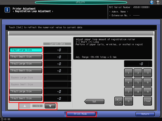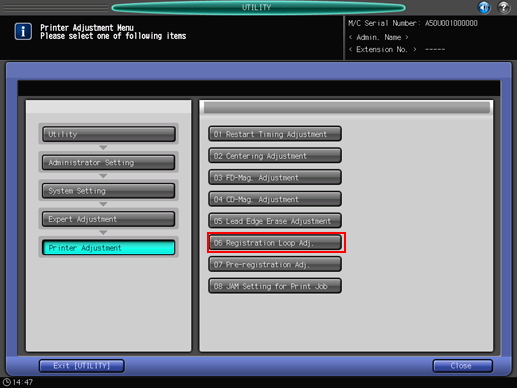 If any adjustment is required, press [Exit PrintMode] to return to the [Registration Loop Adjustment] screen.