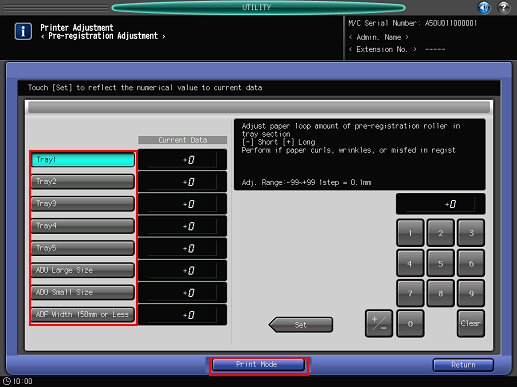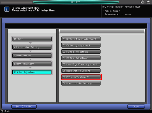 If any adjustment is required, press [Exit PrintMode] to return to the [Pre-registration Adjustment] screen.