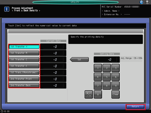 Front & Back Density: Setting the Adjustment Value for Transfer Output Voltage