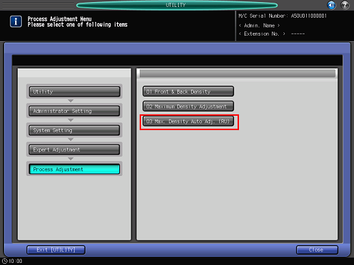 After the adjustment is completed, the screen returns to the [Max. Density Auto Adj.] screen.