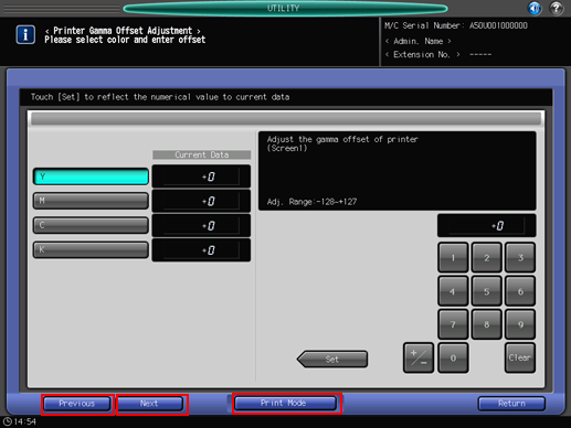 Press [Exit PrintMode] to return to the [Print Gamma Offset Adjustment] screen.