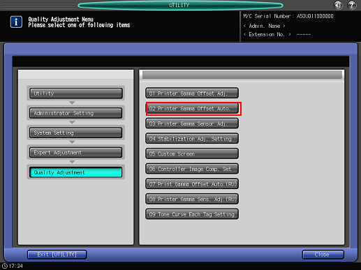 Press [System Setting] on the [Administrator Setting Menu] screen, and then press [Expert Adjustment], [Quality Adjustment], and [Printer Gamma Offset Auto.] in sequence.