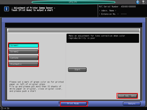 The screens provided here are the same as those provided in the Printer Gamma Offset Adjustment.