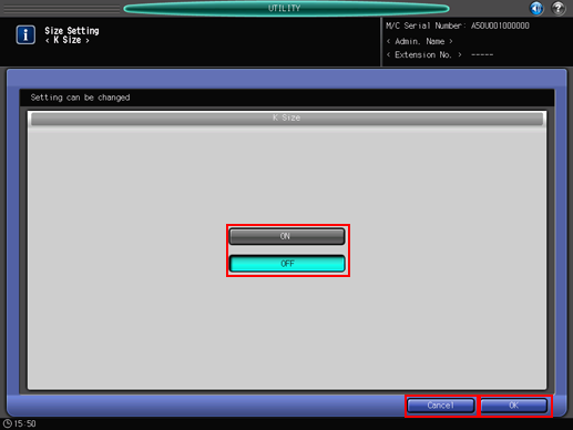 Press [System Setting] on the [Administrator Setting Menu] screen, and then press [Size Setting] and [K Size] in sequence.
