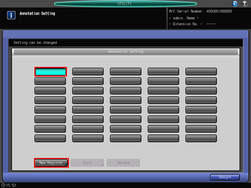 Select a blank key on the [Annotation Setting] screen, and then press [New Register] to register a new annotation setting.
