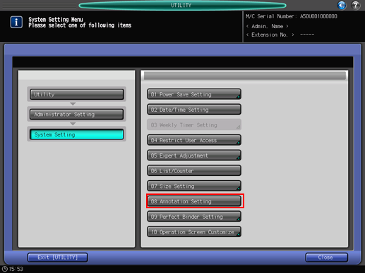 Press [System Setting] on the [Administrator Setting Menu] screen, and then press [Annotation Setting].