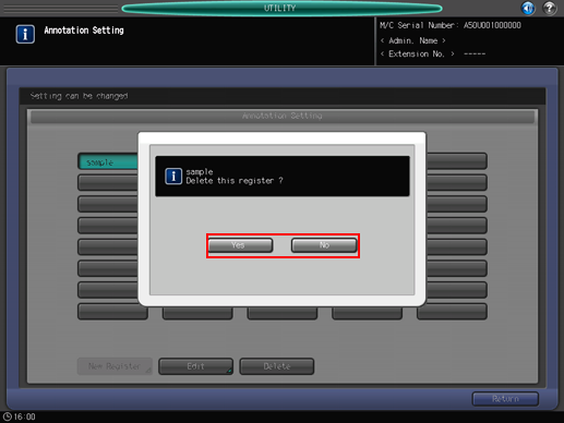 Press a registered key and [Delete] to delete a registered annotation setting.