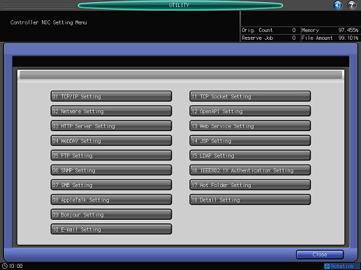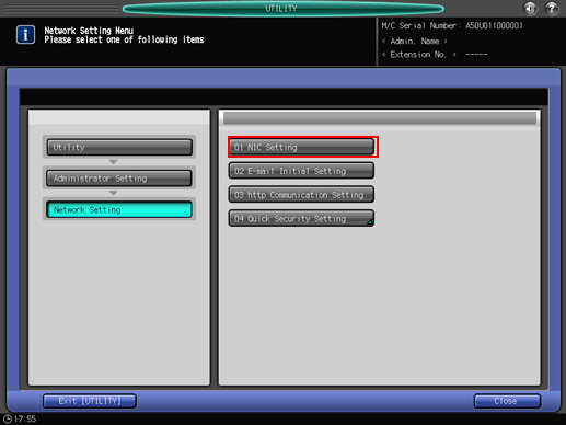 Press [Network Setting] on the [Administrator Setting Menu] screen, and then press [NIC Setting].