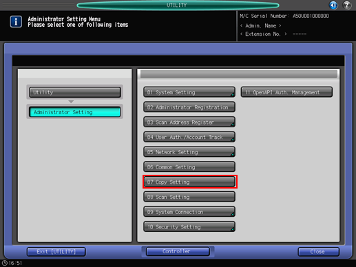 Press [Copy Setting] on the [Administrator Setting Menu] screen.