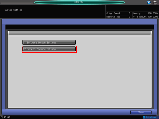 2. Press [System Setting] and [Default Machine Setting] in sequence.