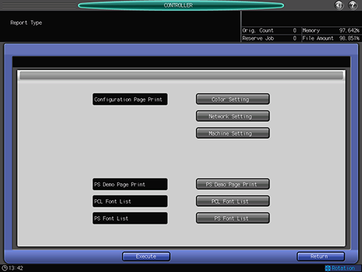 [Configuration Page Print] | Outputs a list of [Color Setting], [Network Setting], and [Machine Setting]. |