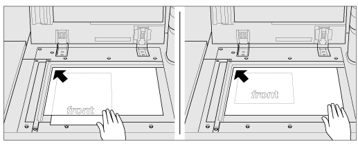 First time: Set the front side of the adjustment chart face up (turned away from the original glass), with its top edge positioned to the back side.