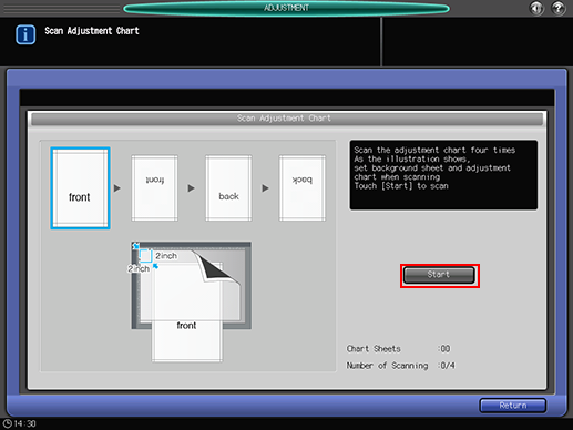 Press [Start] on the [Scan Adjustment Chart] screen.