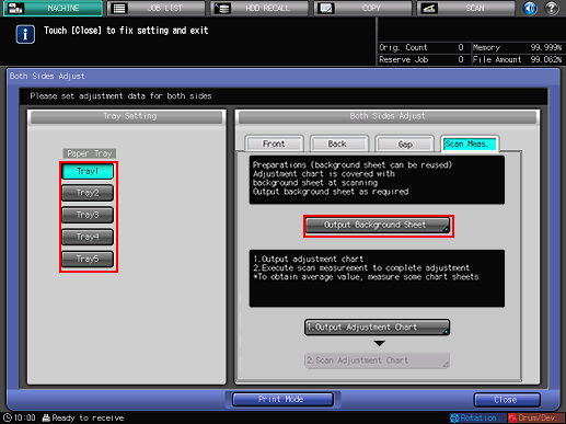 Select the tray for the output background sheet, and then press [Output Background Sheet].