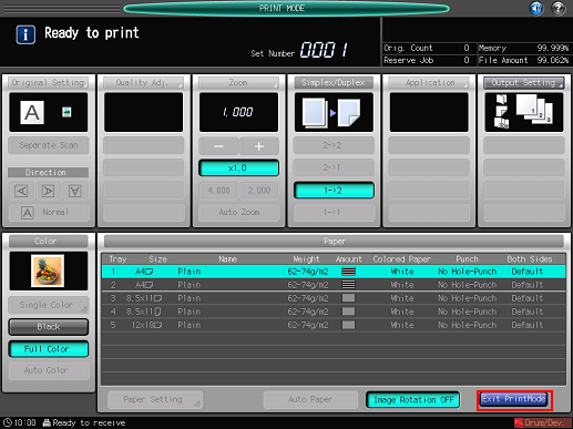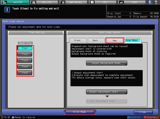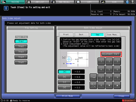 Press [Gap], then press [Print Mode], after selecting the tray loaded with paper for adjustment.