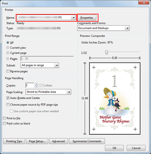 Impose an A4-size PDF document with 32 pages on A4 papers by 2 in 1 (reduced size), and then print with 2-sided.