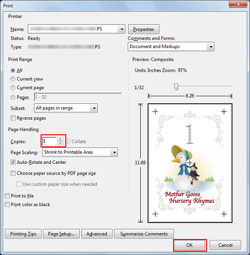 Printing starts. When the printing is completed, go to "Checking the finishing" and check the finishing of the printed document.