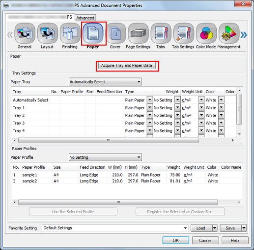 Click the [Paper] tab, and then click [Acquire Tray and Paper Data].