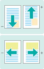 Alignment of the front side and back side (use the sample chart) ![]() | Are the print positions of the front side and back side the same? -> Shifted either upward, downward, leftward or rightward: Image shift adjustment | |